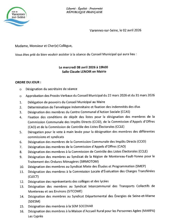 Convocation à retrouver en intégralité dans l’onglet « Municipalité » –> « Conseil Municipal » –> « Conseil Municipal du 8 avril 2026 »